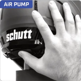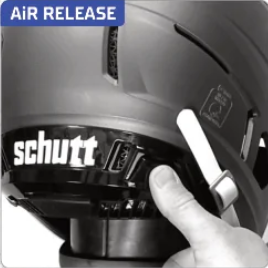 The F7 AiR varsity models utilize Onboard AiR, which allows for the athlete to fine-tune the fit without the need for a handheld air pump. Inflate by pushing on the "AiR" button on the rear of the helmet. Push firmly and directly on the pump until the air bladder pushes firmly against the occiptal (lower) region of the head. Release pressure by pressing the "AiR" button on the right side of the rear bumper. Players may continually adjust air pressure without removing the helmet to achieve ideal fit and comfort.